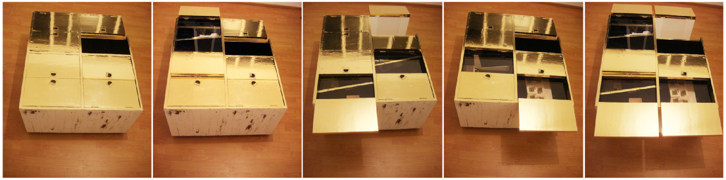 La pieza se inspira en las estructuras dedicadas a la muerte, en las morgues. Se trata de una cajonera de los años 70s que se restaura, maquilla, reconstruye, e interviene, un proceso al que se someten los seres humanos a su despedida, el cuerpo contiene objetos, imágenes y maquetas generadas en el proceso de la beca.