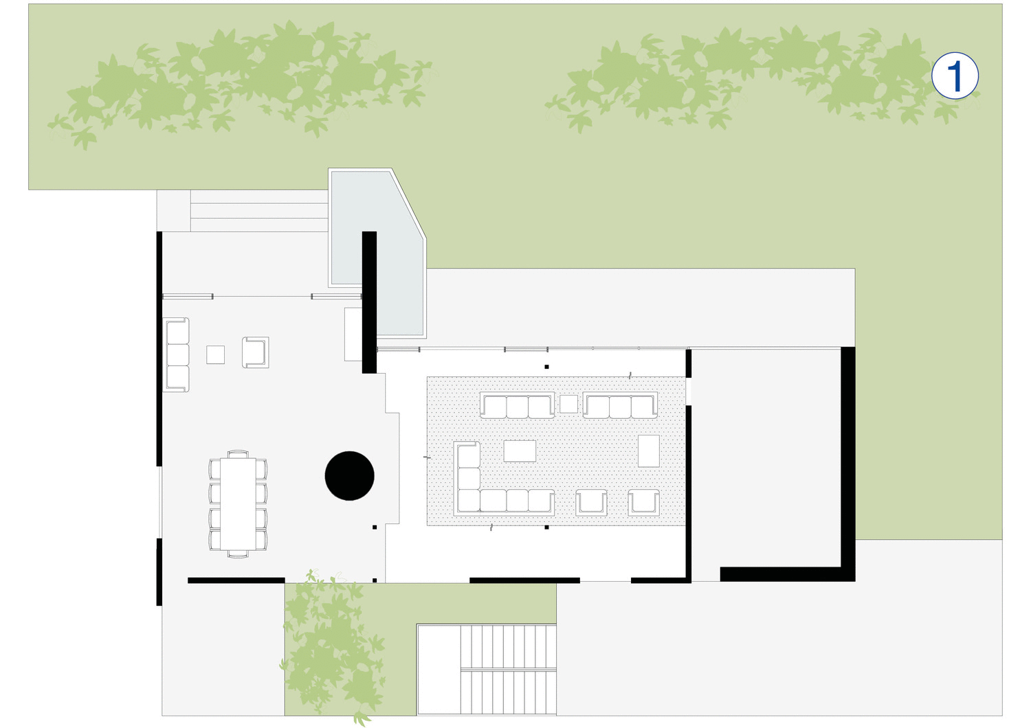 El objetivo principal fue resolver un espacio con vocación privada pero dispuesto a ser en ocasiones público.