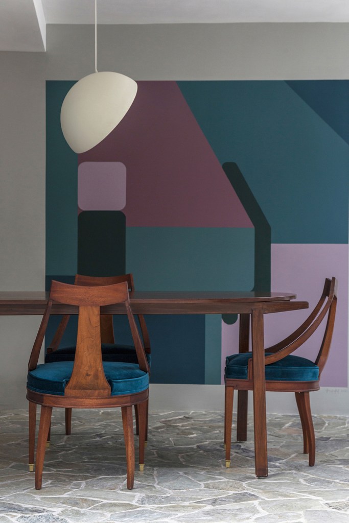El resultado de esta conjunción entre dibujo y vegetación, y la necesidad de expresión creativa dio como resultado un mural para el salón, donde se abstrae la misma composición de Laville representada a mayor escala.