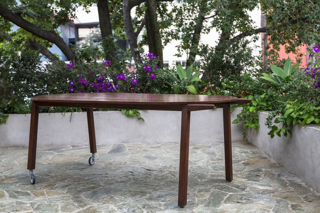 Diseñamos el mobiliario para cubrir las nuevas necesidades de este espacio, un escritorio con repisas y un guardado general para el estudio, en el salón una mesa de madera con ruedas y manijas cuya función es facilitar su movimiento dependiendo de su uso en el salón, logrando también convivir al exterior, en la terraza.